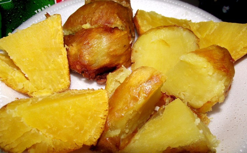 La técnica de ellos es simple, pero fantástica: se hierven las batatas picadas en trozos con todo y sus cascaras y luego se fríen en abundante aceite hasta que se crea un borde crocante todo alrededor. Los bordes se caramelizan y los azucares se concentran mientras el centro conserva una suavidad y cremosidad extraordinaria.