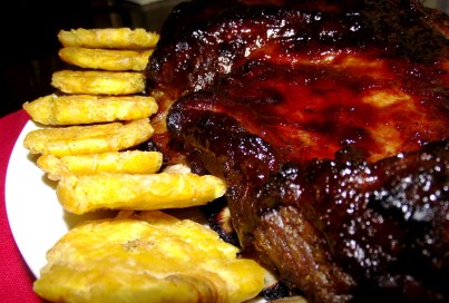Costillitas con tostones