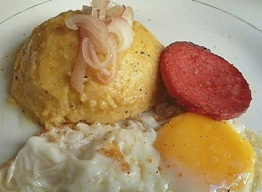 Mangu con huevo frito y salami