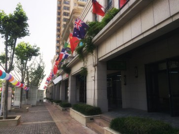 La bandera dominicana ondeo alto en Yantai, China
