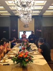 Chef Arturo Feliz Camilo explica el plato a comensales en la cuarta cena en Yantai Wine Bay club