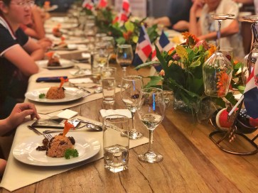 Rabo encendió con moro de habichuelas con coco en la mesa en Yantai Wine Bay Club
