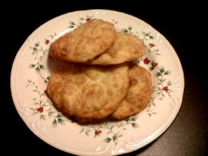 Se cierne la harina con el polvo de hornear, se mezcla con la mantequilla, yema de huevo, leche y sal (Una pizca o al gusto). Se prepara la masa. Se corta en pedazos y se hacen pequeñas bolas. Se expande y se deja reposar media hora (Cubierta con un paño) Luego se fríen. (Da unas 12-15 unidades)